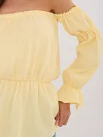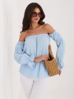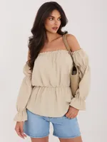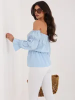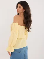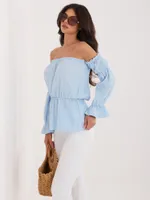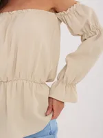 Bluzka z hiszpańskim dekoltem i ozdobnymi falbanami