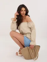 Dopasowana bluzka z odkrytymi ramionami typu hiszpanka