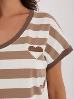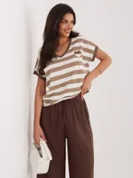 Pasiasta bluzka z ozdobną kokardą na plecach