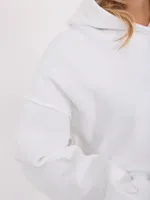 Wymiary bluzy w rozmiarze one size mierzone na płasko: szerokość pod pachami - 64 cm, długość rękawa - 55 cm (od szwu), szerokość w biodrach - 49 cm, długość całkowita - 64 cm.