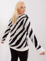 Wymiary swetra w rozmiarze XL/XXL mierzone na płasko: szerokość pod pachami - 54 cm, długość rękawa - 53 cm, długość całkowita - 63 cm.