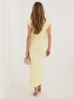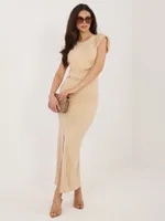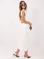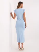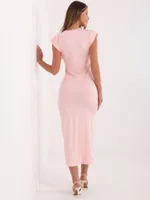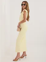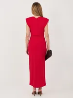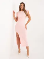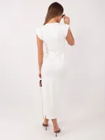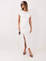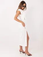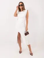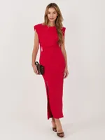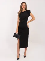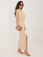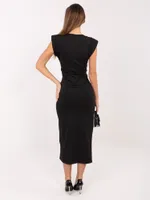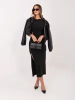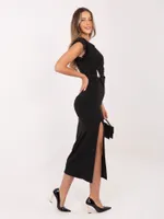 Dopasowana sukienka midi z ozdobną klamrą i rozcięciem