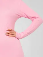 Dopasowana sukienka prążkowana z wysokim kołnierzem