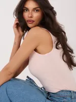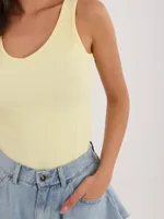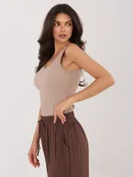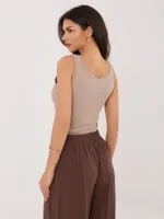 Kobiecy top z dekoracyjnym wykończeniem przy dekolcie