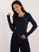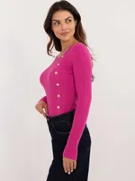 Dopasowany sweter prążkowany z ozdobnymi guzikami