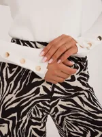 Wymiary swetra w rozmiarze S/M mierzone na płasko: szerokość pod pachami - 45 cm (materiał rozciągliwy), długość rękawa - 58 cm, długość całkowita - 58 cm.