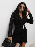 Zwiewna sukienka mini z dekoracyjnym kołnierzykiem