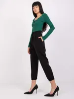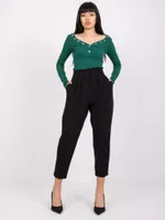 Wymiary spodni w rozmiarze S mierzone na płasko: szerokość w pasie - 32 cm, długość spodni - 90 cm, wysokość stanu - 34 cm.