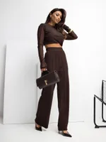 Wygodne spodnie z wysokim stanem i wiązaniem