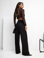 Eleganckie spodnie z wysokim stanem i przeszyciami