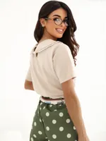 Szorty z wysokim stanem i wykończeniem koronkowym