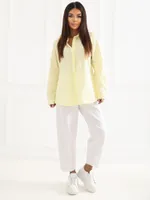 Koszula z ozdobnymi wycięciami i bufiastymi rękawami
