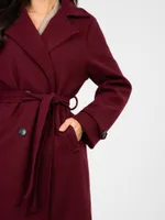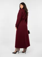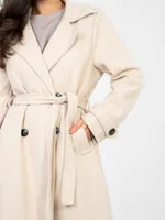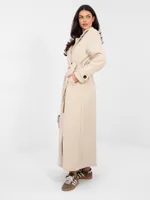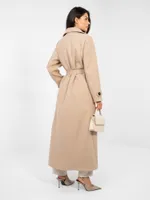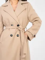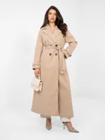 Klasyczny dwurzędowy płaszcz wiązany w talii