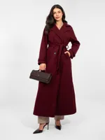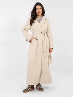 Długi płaszcz o kroju szlafrokowym z wiązaniem