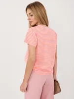 Casualowy T-shirt w paski z dekoltem V
