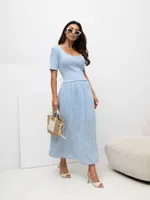 Kobieca sukienka midi z dopasowaną górą