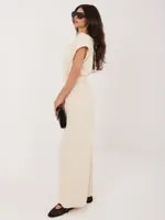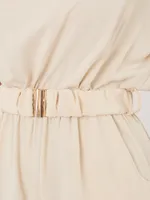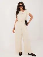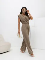 Zwiewny kombinezon z odkrytymi ramionami i paskiem