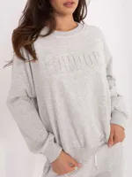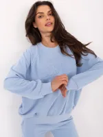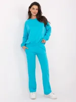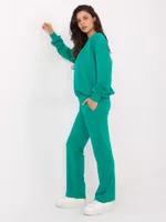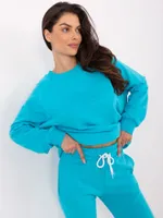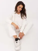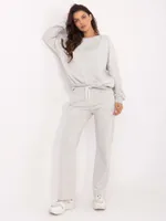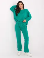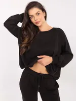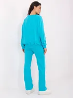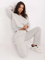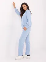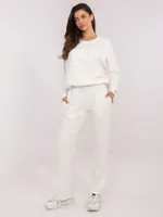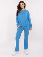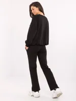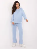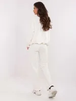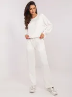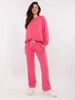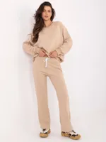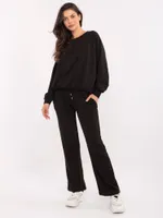 Wymiary kompletu w rozmiarze one size mierzone na płasko: szerokość bluzy pod pachami - 68 cm, długość bluzy - 67 cm, długość rękawa - 64 cm, szerokość spodni w pasie - 33 cm, wysokość stanu - 34 cm, długość spodni - 105 cm.