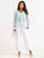 Elegancka bluzka z bufiastymi rękawami i zapięciem