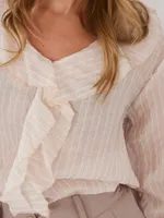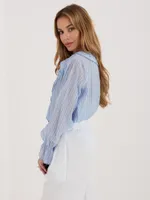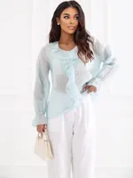 Dopasowana bluzka z długim rękawem i marszczeniami