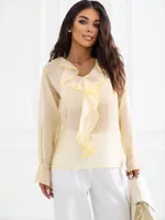 Elegancka koszula z ozdobną broszką i wiązaniem