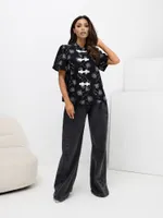 Modelka ma na sobie rozmiar one size. Wymiary modelki: wzrost 168 cm, biust 88 cm, talia 61 cm, biodra 89 cm.