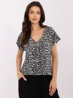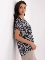 Wymiary bluzki w rozmiarze S mierzone na płasko: szerokość pod pachami - 57 cm długość rękawa - 22 cm (od szwu), szerokość w biodrach - 55 cm, długość całkowita - 63 cm (przód), długość całkowita - 69 cm (tył).