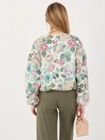 Krótka kurtka typu bomber z kwiatowym wzorem