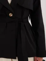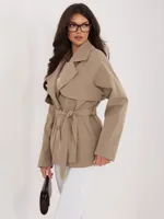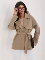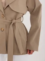Klasyczny płaszcz dwurzędowy z wiązanym paskiem