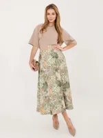 Rozkloszowana spódnica midi z paskiem w talii