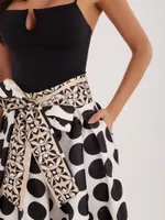 Rozkloszowana spódnica midi z wiązanym pasem