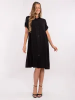 Wymiary sukienki w rozmiarze one size mierzone na płasko: szerokość pod pachami - 49 cm, szerokość w talii - 49 cm, długość rękawa - 26 cm, szerokość w biodrach - 77 cm, długość całkowita - 105 cm.