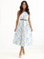 Elegancka sukienka midi z ozdobnym paskiem