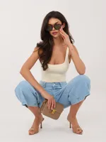 Modelka ma na sobie rozmiar 38. Wymiary modelki: wzrost 173 cm, biust 85 cm, talia 62 cm, biodra 95 cm .
