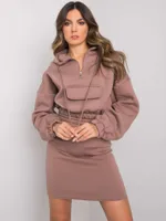 komplet zawiera: bluzę, spódnicę