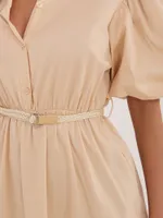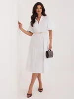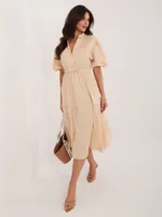 Sukienka midi z falbankami przy rękawach