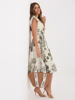 Zwiewna sukienka midi z falbankami przy rękawach