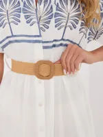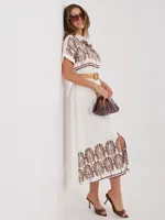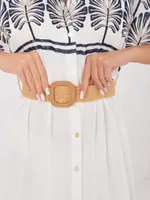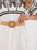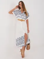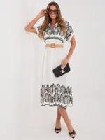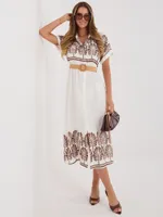 Koszulowa sukienka midi w roślinne motywy z paskiem