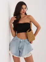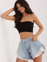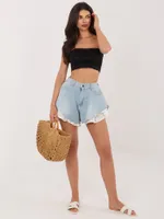 Szorty z wysokim stanem i wykończeniem koronkowym