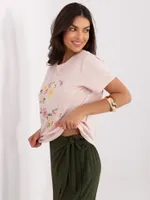 Casualowy T-shirt z haftowanym motywem zwierzęcym