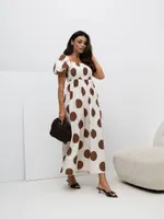 Sukienka midi w grochy z hiszpańskim dekoltem