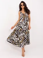 Zwiewna sukienka midi na ramiączkach w zwierzęcy wzór